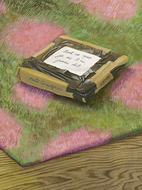 «Je pense à toi tous les jours.» Des mots apparaissent dans le décor. Les protagonistes sont hors-champ. On navigue l’imaginaire à vif, emporté par un réalisme magique aux accents fauves, entre des paysages à l’encre et à la gouache, baignés d’une chaude lumière mais indiciblement menaçants.